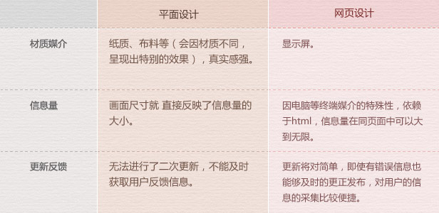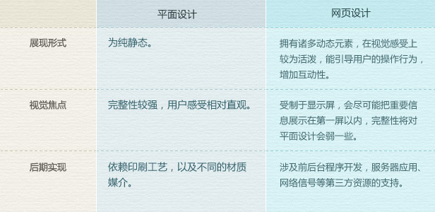 平面設(shè)計(jì)屬于比較傳統(tǒng)的信息媒介設(shè)計(jì),一般會通過張貼、銷售、郵寄派送等形式進(jìn)行傳播,這樣傳播的方式范圍小且成本較高,相對而言在這方面網(wǎng)頁設(shè)計(jì)的信息傳播能力卻非常的強(qiáng),但依賴于第三方媒介的支持,平面設(shè)計(jì)卻擁有更為廣泛的受眾人群,不同的年齡層對于紙張或書本的信息接受能力總是強(qiáng)于網(wǎng)絡(luò)媒體的,畢竟網(wǎng)絡(luò)信息獲取的將會存在一個學(xué)習(xí)成本,在今后網(wǎng)絡(luò)信息的不斷普及以及終端媒介用戶體驗(yàn)的不斷提升,在受眾人群方面在我看來差距會越來越小。