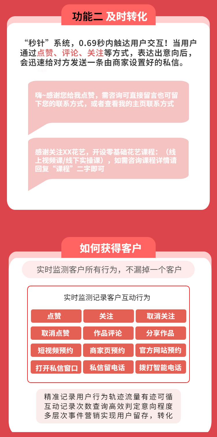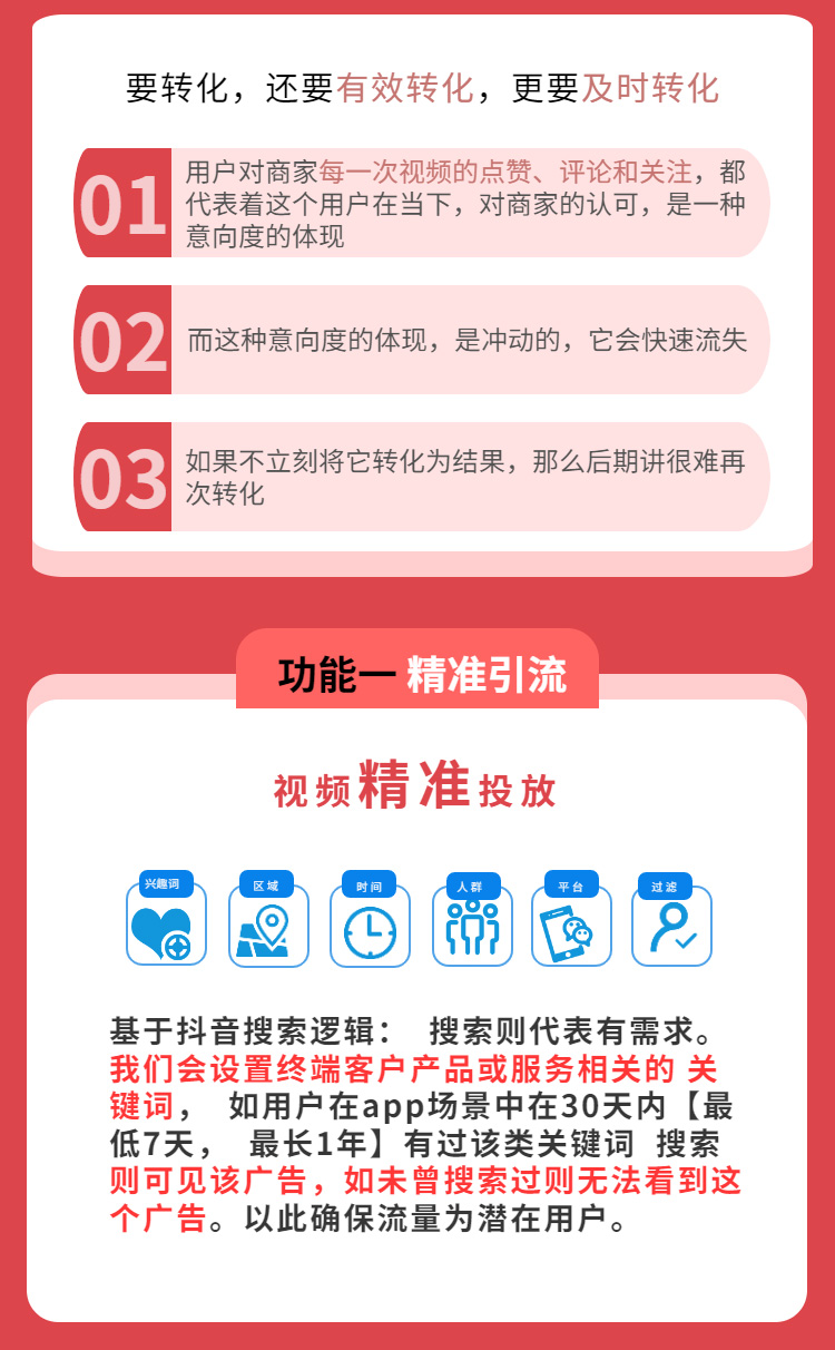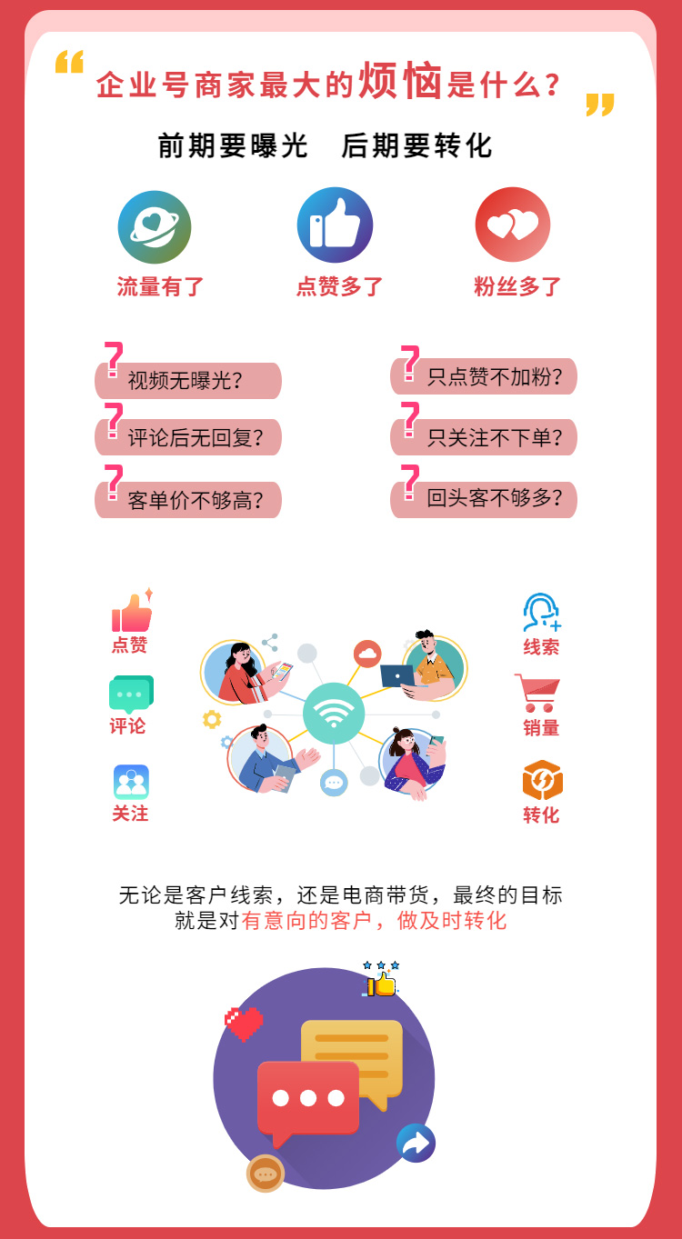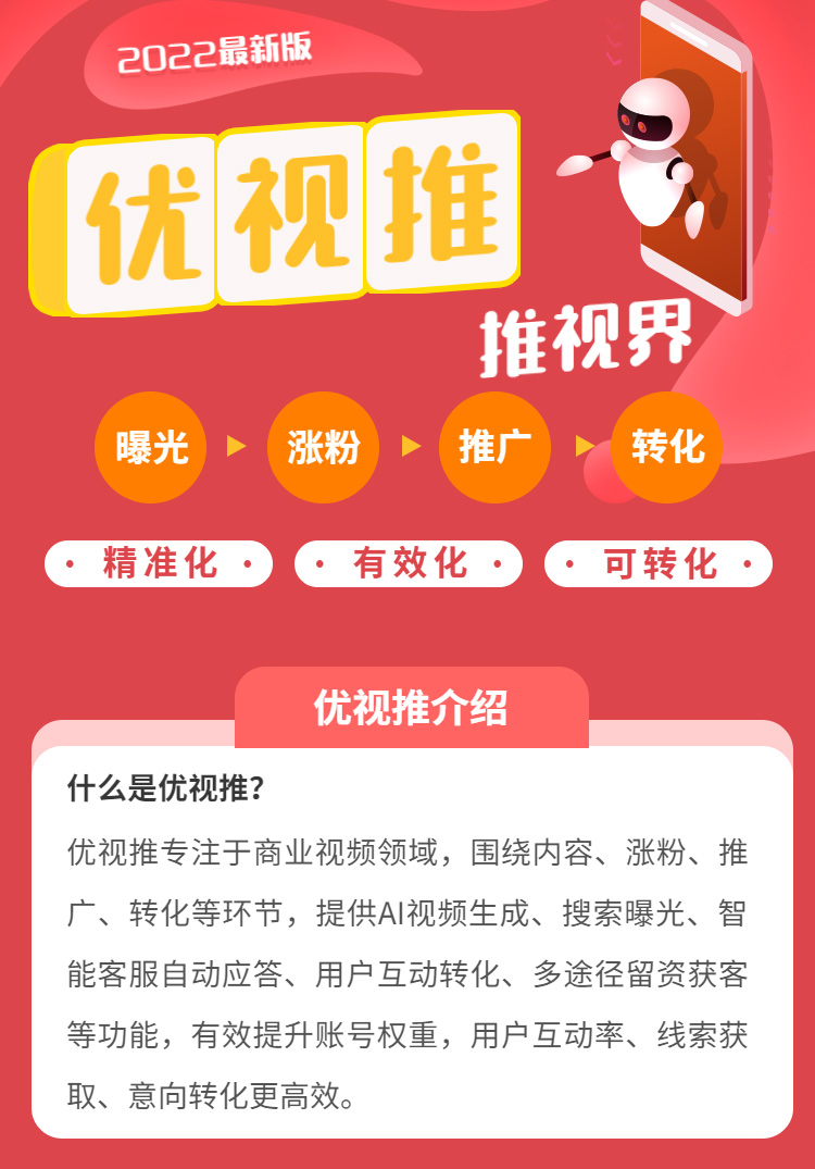 短視頻平臺(tái)智能營(yíng)銷(xiāo)獲客系統(tǒng)專(zhuān)注于商業(yè)視頻領(lǐng)域,國(guó)繞內(nèi)容、漲粉、推廣、轉(zhuǎn)化等環(huán)節(jié),提供Al視頻生成、搜索曝光、智能客服自動(dòng)應(yīng)答、用戶互動(dòng)轉(zhuǎn)化、多途徑留資獲客等功能,有效提升賬號(hào)權(quán)重,用戶互動(dòng)率、線索獲取、意向轉(zhuǎn)化更高效。